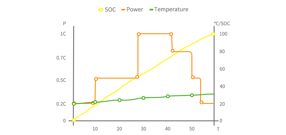 Technische Schwierigkeit: Die meisten Lithiumbatterien werden derzeit blind geladen, sodass die Ladeeffizienz hauptsächlich von zwei Aspekten beeinflusst wird: a) ob die Ladeleistung der Ladeeinrichtung die obere Ladeleistung der Lithiumbatterie erreicht; b, die Zusammenarbeit zwischen der Ladeeinrichtung und der Lithiumbatterie, da die obere Ladeleistung der Lithiumbatterie in verschiedenen SOC-Stufen schwankt und wenn die Ladeeinrichtung nicht entsprechend angepasst werden kann, wirkt sich dies auch auf die Ladeeffizienz aus
